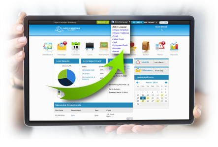 Multiple languages helps improve communications with with parents and students.